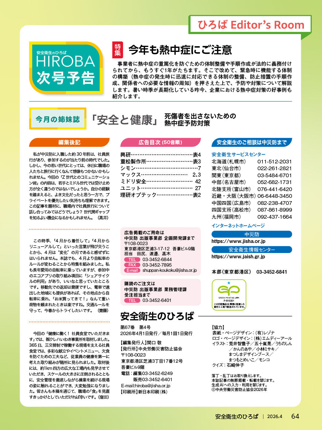 月刊誌「安全衛生のひろば」2026年4月号