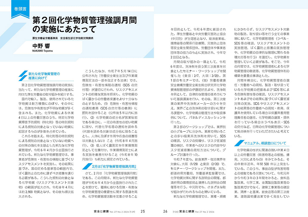 25 巻頭言 第2回化学物質管理強調月間の実施にあたって