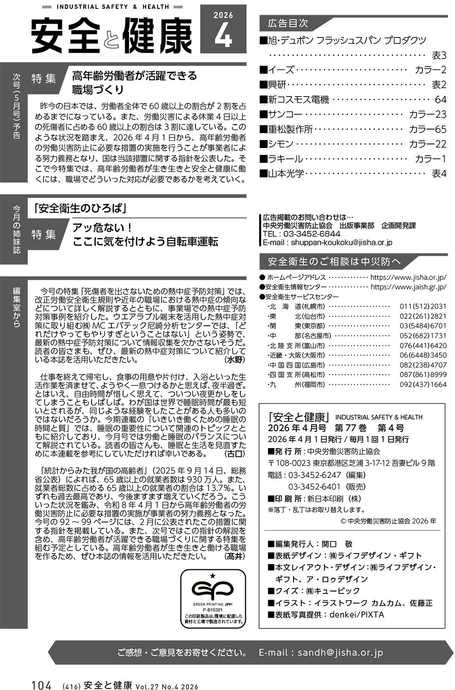 月刊誌「安全と健康」2026年4月号
