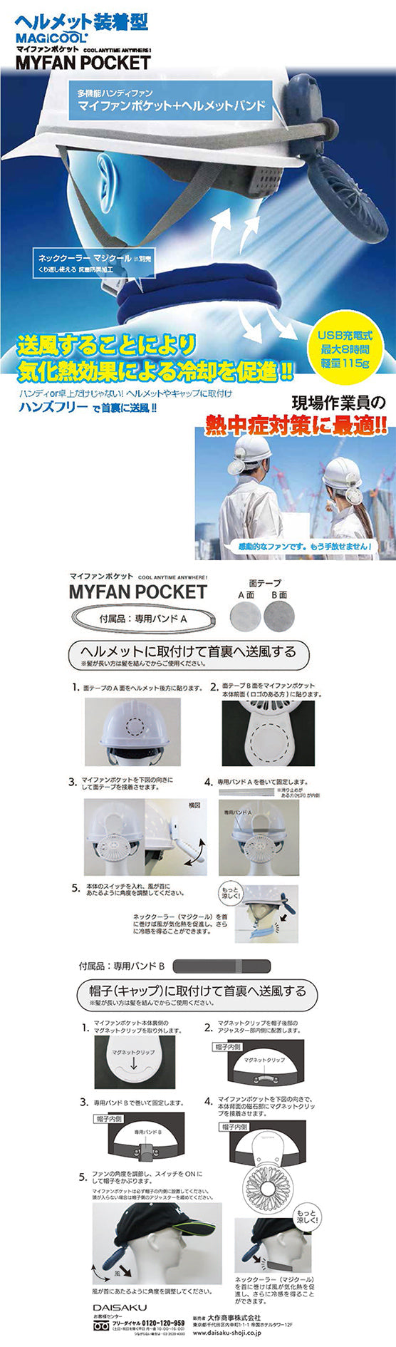 ヘルメット装着型マイファンポケット(白)